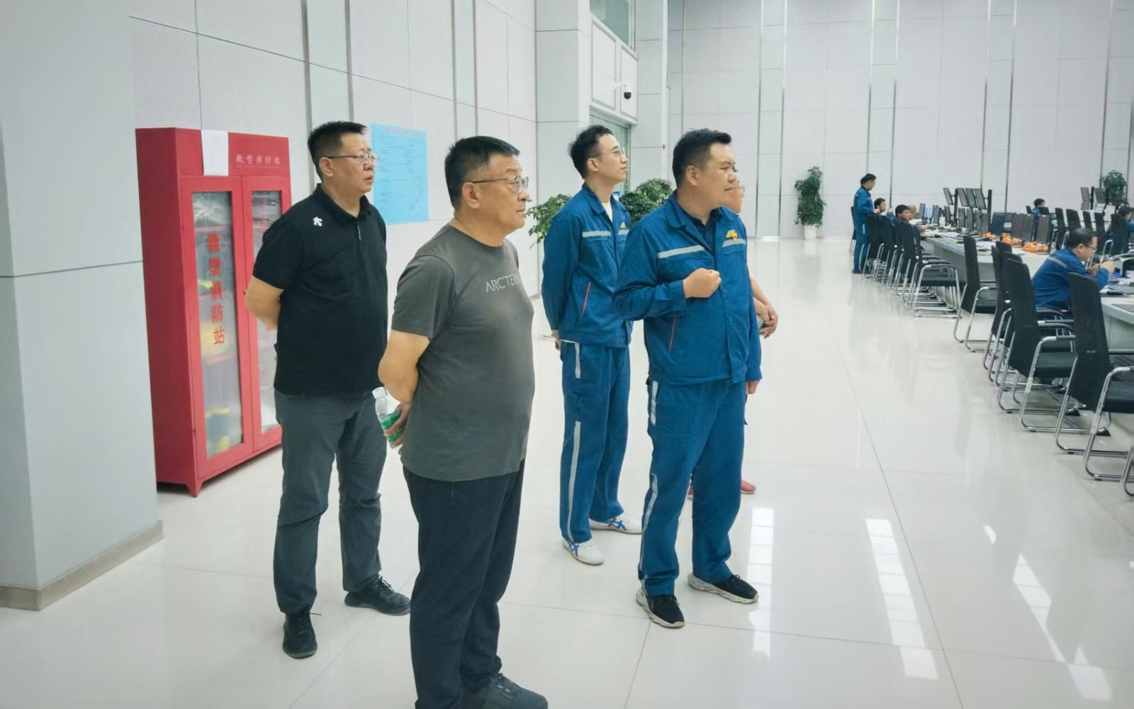 會后,蘭州職業技術學院調研組一行實地參觀了環保科技公司的中控室。通過現場觀摩和講解,直觀了解了企業的生產運營流程、智能化管理平臺以及核心環保工藝技術的應用情況。