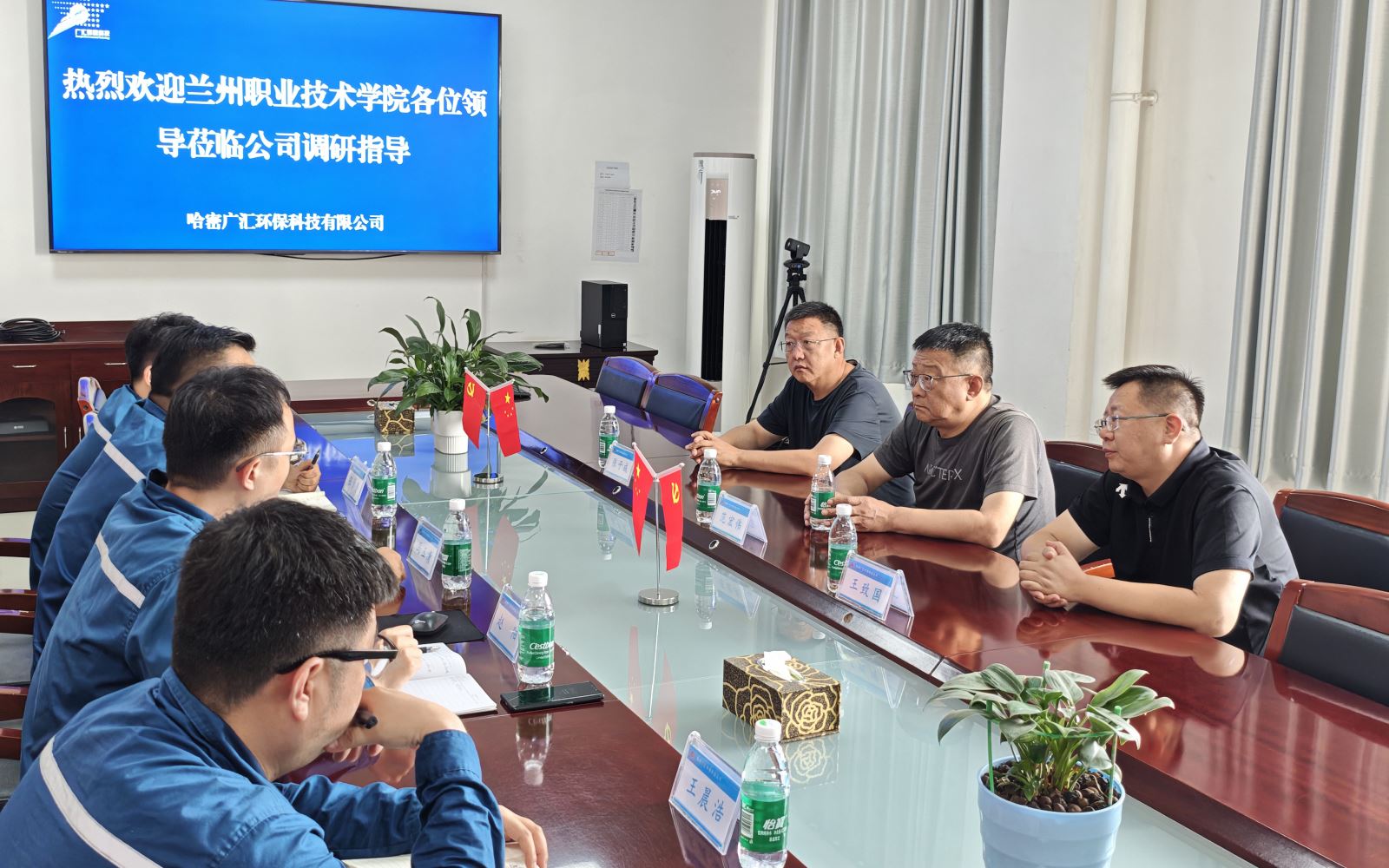 7月15日,蘭州職業技術學院副院長范宏偉帶隊,招生就業處處長王致國、合作辦學處處長張子成一行到訪環保科技公司考察調研,旨在深化校企交流,探索產教融合新路徑。環保科技公司相關負責人陪同調研。
